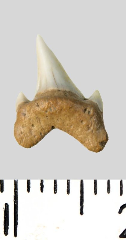 Зуб. Акула. Archaeolamna cf. kopingensis (Davis, 1890). Классификация: Хордовые Chordata, Позвоночные Vertebrata, Хрящевые рыбы Chondrichthyes, Пластиножаберные Elasmobranchii, Акулы Selachii, Ламнообразные Lamniformes