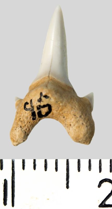 Зуб. Акула. Archaeolamna cf. kopingensis (Davis, 1890). Классификация: Хордовые Chordata, Позвоночные Vertebrata, Хрящевые рыбы Chondrichthyes, Пластиножаберные Elasmobranchii, Акулы Selachii, Ламнообразные Lamniformes