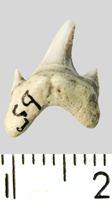 Зуб. Акула. Archaeolamna cf. kopingensis (Davis, 1890). Классификация: Хордовые Chordata, Позвоночные Vertebrata, Хрящевые рыбы Chondrichthyes, Пластиножаберные Elasmobranchii, Акулы Selachii, Ламнообразные Lamniformes