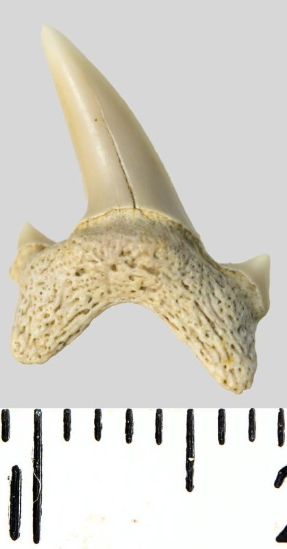 Зуб. Акула. Archaeolamna cf. kopingensis (Davis, 1890). Классификация: Хордовые Chordata, Позвоночные Vertebrata, Хрящевые рыбы Chondrichthyes, Пластиножаберные Elasmobranchii, Акулы Selachii, Ламнообразные Lamniformes