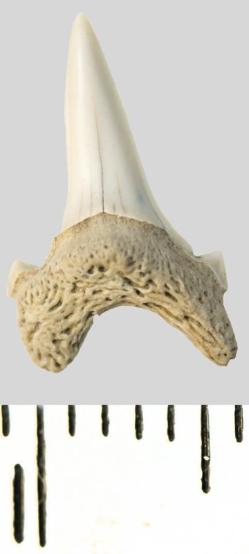 Зуб. Акула. Archaeolamna cf. kopingensis (Davis, 1890). Классификация: Хордовые Chordata, Позвоночные Vertebrata, Хрящевые рыбы Chondrichthyes, Пластиножаберные Elasmobranchii, Акулы Selachii, Ламнообразные Lamniformes
