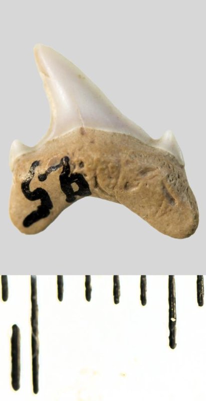 Зуб. Акула. Archaeolamna cf. kopingensis (Davis, 1890). Классификация: Хордовые Chordata, Позвоночные Vertebrata, Хрящевые рыбы Chondrichthyes, Пластиножаберные Elasmobranchii, Акулы Selachii, Ламнообразные Lamniformes