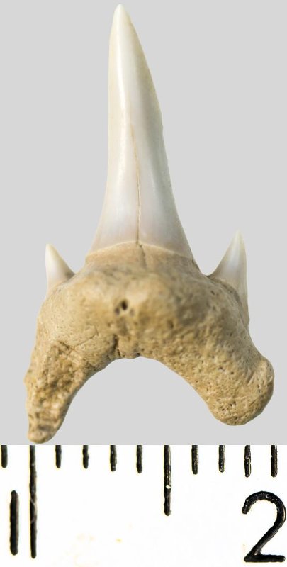 Зуб. Акула. Archaeolamna cf. kopingensis (Davis, 1890). Классификация: Хордовые Chordata, Позвоночные Vertebrata, Хрящевые рыбы Chondrichthyes, Пластиножаберные Elasmobranchii, Акулы Selachii, Ламнообразные Lamniformes