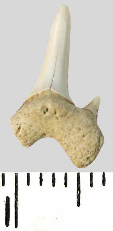 Зуб. Акула. Archaeolamna cf. kopingensis (Davis, 1890). Классификация: Хордовые Chordata, Позвоночные Vertebrata, Хрящевые рыбы Chondrichthyes, Пластиножаберные Elasmobranchii, Акулы Selachii, Ламнообразные Lamniformes