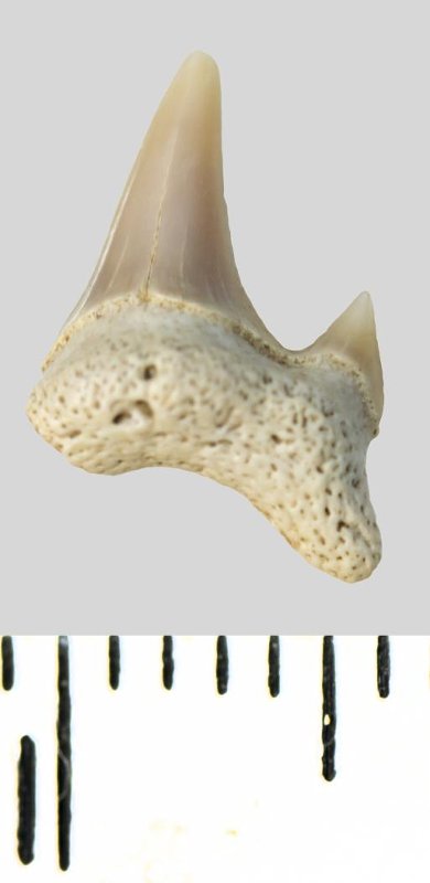 Зуб. Акула. Archaeolamna cf. kopingensis (Davis, 1890). Классификация: Хордовые Chordata, Позвоночные Vertebrata, Хрящевые рыбы Chondrichthyes, Пластиножаберные Elasmobranchii, Акулы Selachii, Ламнообразные Lamniformes