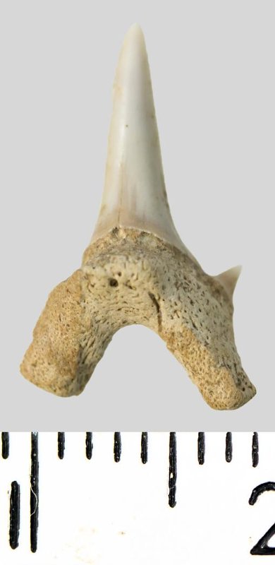 Зуб. Акула. Archaeolamna cf. kopingensis (Davis, 1890). Классификация: Хордовые Chordata, Позвоночные Vertebrata, Хрящевые рыбы Chondrichthyes, Пластиножаберные Elasmobranchii, Акулы Selachii, Ламнообразные Lamniformes