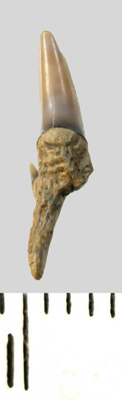 Зуб. Акула. Protolamna sp.? Классификация: Хордовые Chordata, Позвоночные Vertebrata, Хрящевые рыбы Chondrichthyes, Пластиножаберные Elasmobranchii, Акулы Selachii, Ламнообразные Lamniformes