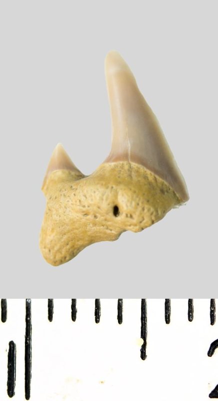 Зуб. Акула. Archaeolamna cf. kopingensis (Davis, 1890). Классификация: Хордовые Chordata, Позвоночные Vertebrata, Хрящевые рыбы Chondrichthyes, Пластиножаберные Elasmobranchii, Акулы Selachii, Ламнообразные Lamniformes