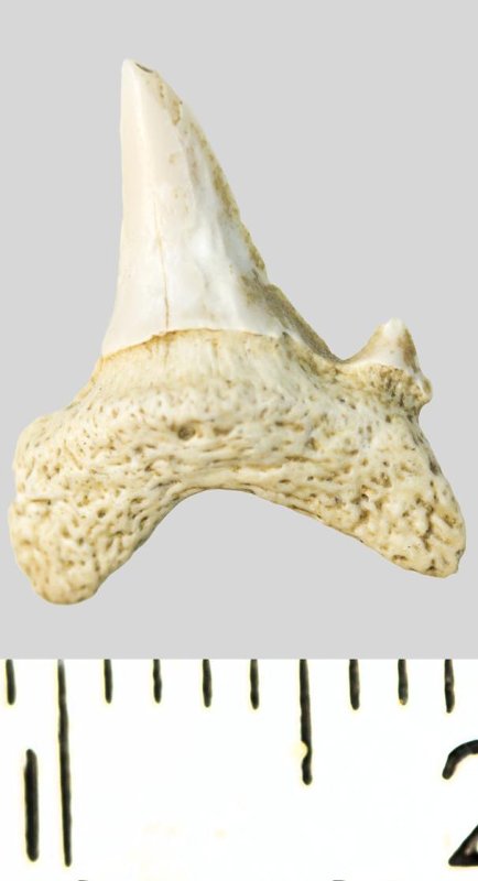 Зуб. Акула. Archaeolamna cf. kopingensis (Davis, 1890). Классификация: Хордовые Chordata, Позвоночные Vertebrata, Хрящевые рыбы Chondrichthyes, Пластиножаберные Elasmobranchii, Акулы Selachii, Ламнообразные Lamniformes