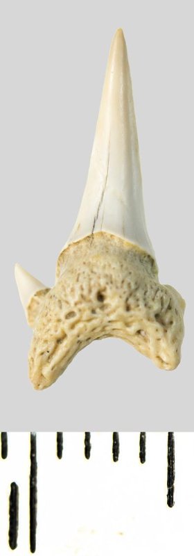 Зуб. Акула. Archaeolamna cf. kopingensis (Davis, 1890). Классификация: Хордовые Chordata, Позвоночные Vertebrata, Хрящевые рыбы Chondrichthyes, Пластиножаберные Elasmobranchii, Акулы Selachii, Ламнообразные Lamniformes