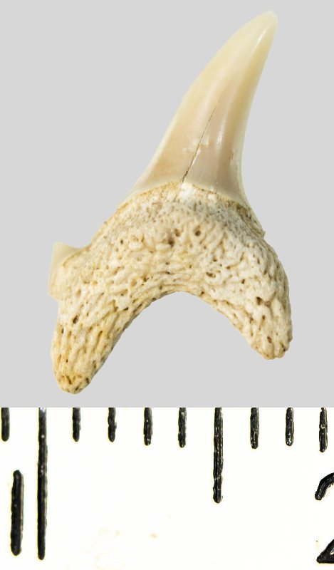 Зуб. Акула. Archaeolamna cf. kopingensis (Davis, 1890). Классификация: Хордовые Chordata, Позвоночные Vertebrata, Хрящевые рыбы Chondrichthyes, Пластиножаберные Elasmobranchii, Акулы Selachii, Ламнообразные Lamniformes