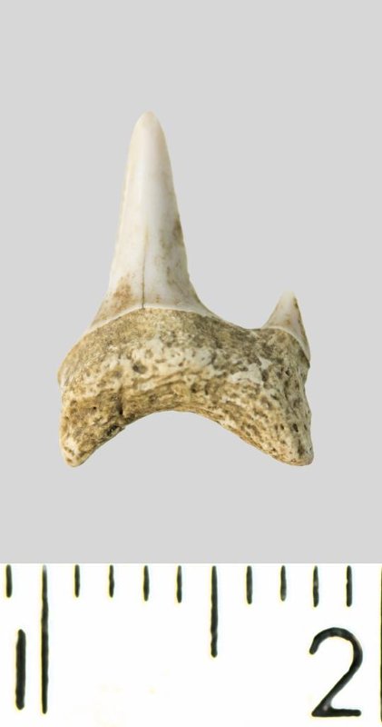 Зуб. Акула. Archaeolamna cf. kopingensis (Davis, 1890). Классификация: Хордовые Chordata, Позвоночные Vertebrata, Хрящевые рыбы Chondrichthyes, Пластиножаберные Elasmobranchii, Акулы Selachii, Ламнообразные Lamniformes