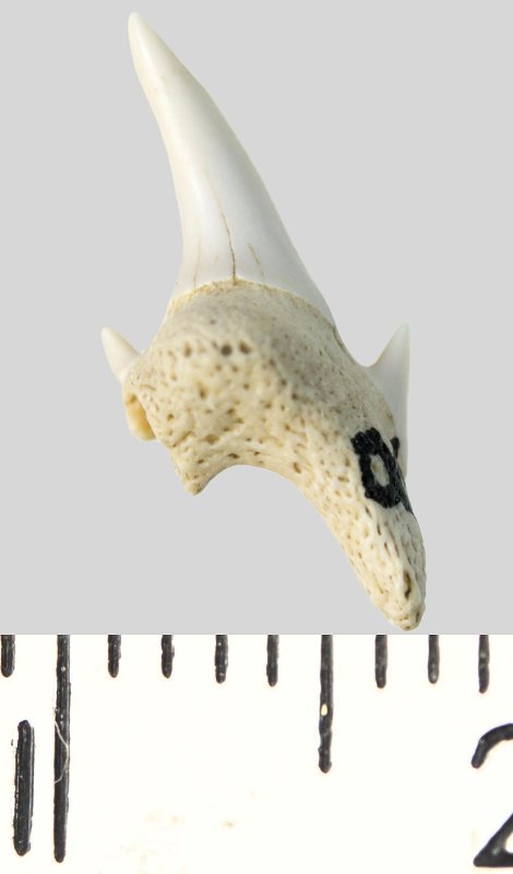 Зуб. Акула. Protolamna cf. sokolovi Capetta, 1980. Классификация: Хордовые Chordata, Позвоночные Vertebrata, Хрящевые рыбы Chondrichthyes, Пластиножаберные Elasmobranchii, Акулы Selachii, Ламнообразные Lamniformes