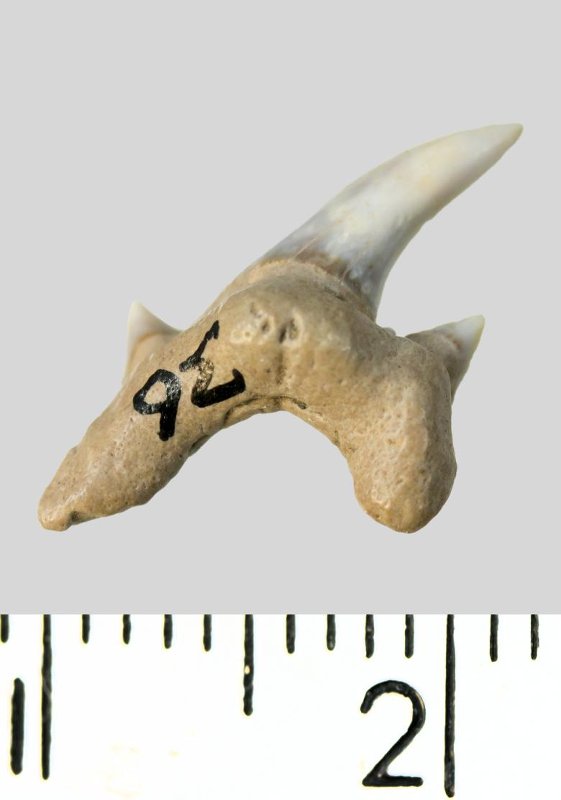 Зуб. Акула. Protolamna cf. sokolovi Capetta, 1980. Классификация: Хордовые Chordata, Позвоночные Vertebrata, Хрящевые рыбы Chondrichthyes, Пластиножаберные Elasmobranchii, Акулы Selachii, Ламнообразные Lamniformes
