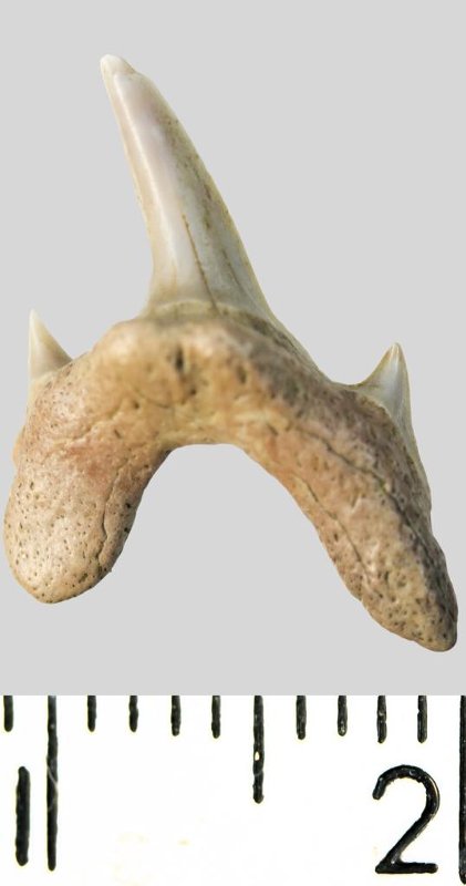 Зуб. Акула. Protolamna cf. sokolovi Capetta, 1980. Классификация: Хордовые Chordata, Позвоночные Vertebrata, Хрящевые рыбы Chondrichthyes, Пластиножаберные Elasmobranchii, Акулы Selachii, Ламнообразные Lamniformes