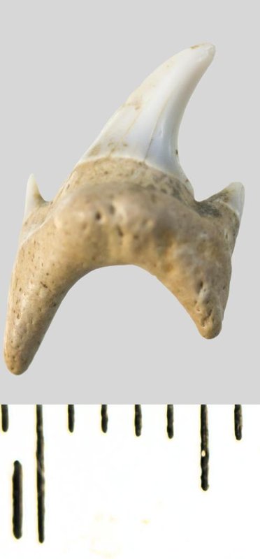 Зуб. Акула. Protolamna cf. sokolovi Capetta, 1980. Классификация: Хордовые Chordata, Позвоночные Vertebrata, Хрящевые рыбы Chondrichthyes, Пластиножаберные Elasmobranchii, Акулы Selachii, Ламнообразные Lamniformes