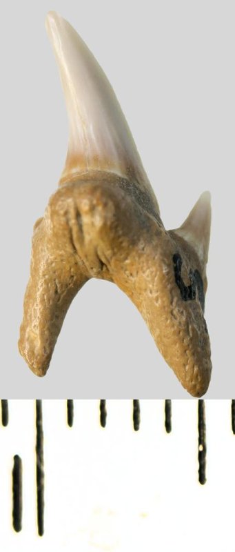 Зуб. Акула. Protolamna cf. sokolovi Capetta, 1980. Классификация: Хордовые Chordata, Позвоночные Vertebrata, Хрящевые рыбы Chondrichthyes, Пластиножаберные Elasmobranchii, Акулы Selachii, Ламнообразные Lamniformes