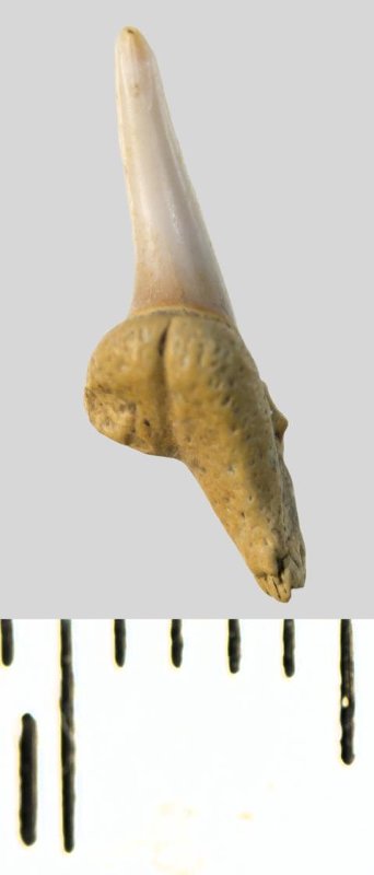 Зуб. Акула. Eostriatolamia subulata (Agassiz, 1843). Классификация: Хордовые Chordata, Позвоночные Vertebrata, Хрящевые рыбы Chondrichthyes, Пластиножаберные Elasmobranchii, Акулы Selachii, Ламнообразные Lamniformes
