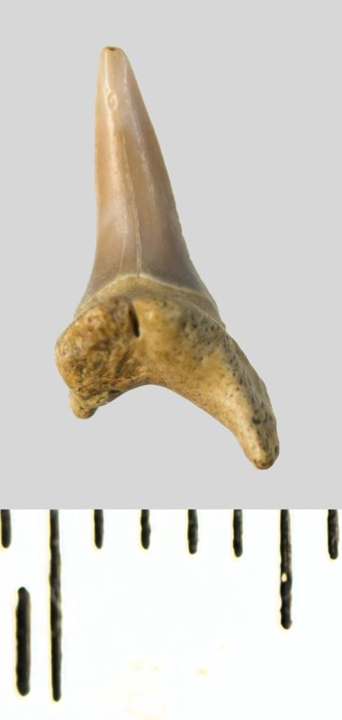 Зуб. Акула. Eostriatolamia subulata (Agassiz, 1843). Классификация: Хордовые Chordata, Позвоночные Vertebrata, Хрящевые рыбы Chondrichthyes, Пластиножаберные Elasmobranchii, Акулы Selachii, Ламнообразные Lamniformes