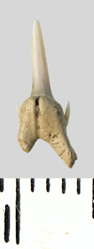 Зуб. Акула. Eostriatolamia subulata (Agassiz, 1843). Классификация: Хордовые Chordata, Позвоночные Vertebrata, Хрящевые рыбы Chondrichthyes, Пластиножаберные Elasmobranchii, Акулы Selachii, Ламнообразные Lamniformes
