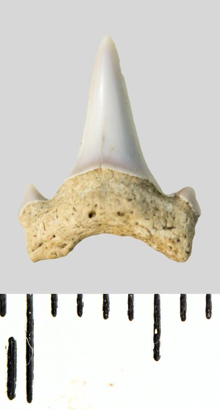 Зуб. Акула. Eostriatolamia subulata (Agassiz, 1843). Классификация: Хордовые Chordata, Позвоночные Vertebrata, Хрящевые рыбы Chondrichthyes, Пластиножаберные Elasmobranchii, Акулы Selachii, Ламнообразные Lamniformes