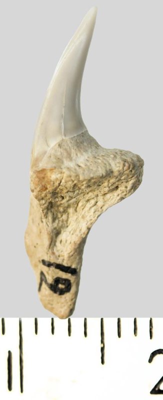 Зуб. Акула. Pseudoscapanorhynchus compressidens ( Herman 1977). Классификация: Хордовые Chordata, Позвоночные Vertebrata, Хрящевые рыбы Chondrichthyes, Пластиножаберные Elasmobranchii, Акулы Selachii, Ламнообразные Lamniformes