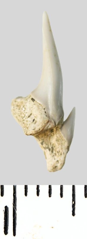 Зуб. Акула. Pseudoscapanorhynchus compressidens ( Herman 1977). Классификация: Хордовые Chordata, Позвоночные Vertebrata, Хрящевые рыбы Chondrichthyes, Пластиножаберные Elasmobranchii, Акулы Selachii, Ламнообразные Lamniformes