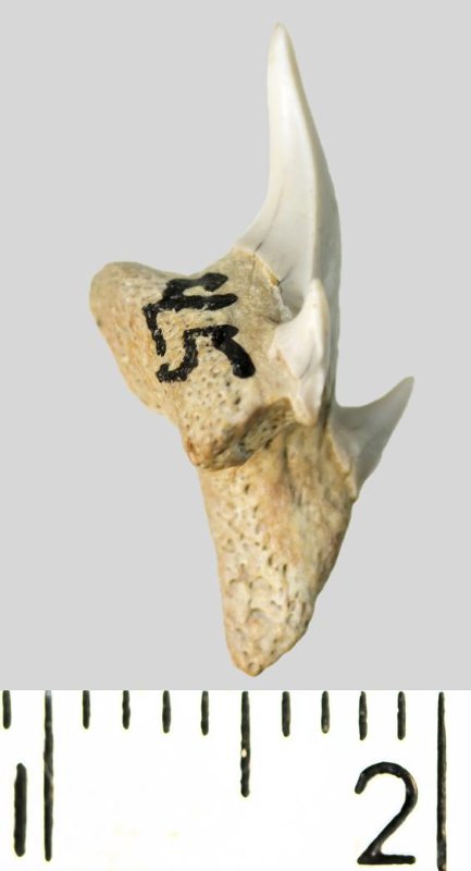 Зуб. Акула. Pseudoscapanorhynchus compressidens ( Herman 1977). Классификация: Хордовые Chordata, Позвоночные Vertebrata, Хрящевые рыбы Chondrichthyes, Пластиножаберные Elasmobranchii, Акулы Selachii, Ламнообразные Lamniformes