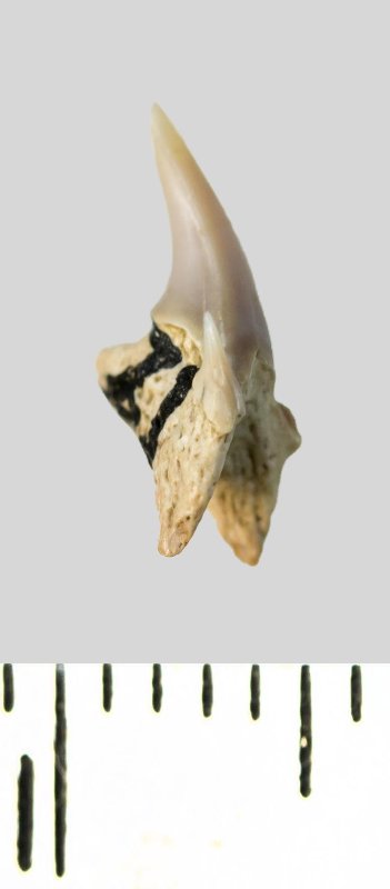 Зуб. Акула. Pseudoscapanorhynchus compressidens ( Herman 1977). Классификация: Хордовые Chordata, Позвоночные Vertebrata, Хрящевые рыбы Chondrichthyes, Пластиножаберные Elasmobranchii, Акулы Selachii, Ламнообразные Lamniformes