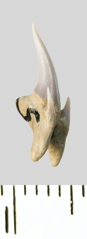 Зуб. Акула. Pseudoscapanorhynchus compressidens ( Herman 1977). Классификация: Хордовые Chordata, Позвоночные Vertebrata, Хрящевые рыбы Chondrichthyes, Пластиножаберные Elasmobranchii, Акулы Selachii, Ламнообразные Lamniformes