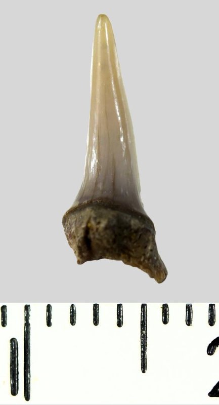 Зуб (фрагмент). Акула. Lamniformes gen. et sp. indet. Классификация: Хордовые Chordata, Позвоночные Vertebrata, Хрящевые рыбы Chondrichthyes, Пластиножаберные Elasmobranchii, Акулы Selachii, Ламнообразные Lamniformes