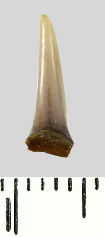 Зуб (фрагмент). Акула. Lamniformes gen. et sp. indet. Классификация: Хордовые Chordata, Позвоночные Vertebrata, Хрящевые рыбы Chondrichthyes, Пластиножаберные Elasmobranchii, Акулы Selachii, Ламнообразные Lamniformes
