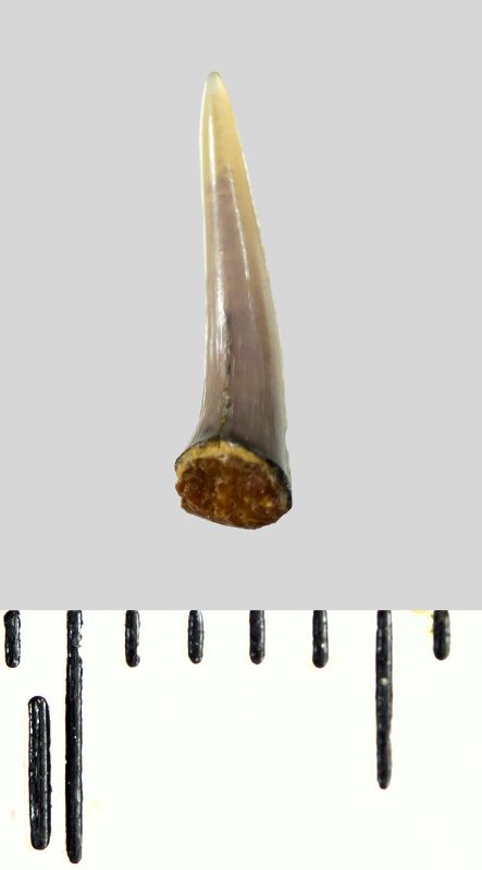 Зуб (фрагмент). Акула. Lamniformes gen. et sp. indet. Классификация: Хордовые Chordata, Позвоночные Vertebrata, Хрящевые рыбы Chondrichthyes, Пластиножаберные Elasmobranchii, Акулы Selachii, Ламнообразные Lamniformes