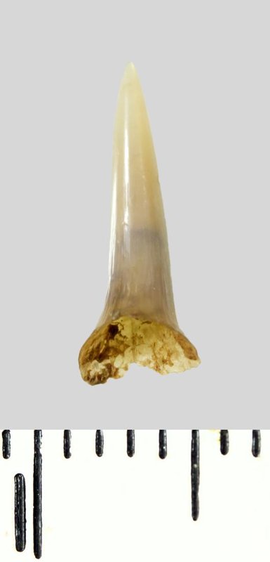 Зуб (фрагмент). Акула. Lamniformes gen. et sp. indet. Классификация: Хордовые Chordata, Позвоночные Vertebrata, Хрящевые рыбы Chondrichthyes, Пластиножаберные Elasmobranchii, Акулы Selachii, Ламнообразные Lamniformes