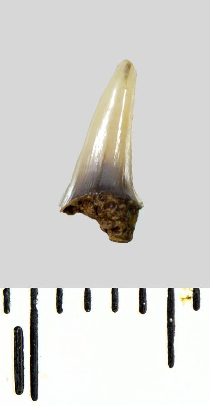 Зуб (фрагмент). Акула. Lamniformes gen. et sp. indet. Классификация: Хордовые Chordata, Позвоночные Vertebrata, Хрящевые рыбы Chondrichthyes, Пластиножаберные Elasmobranchii, Акулы Selachii, Ламнообразные Lamniformes