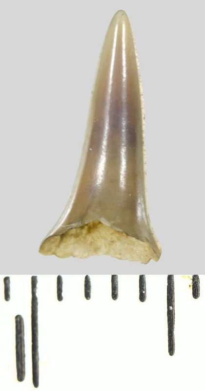 Зуб (фрагмент). Акула. Lamniformes gen. et sp. indet. Классификация: Хордовые Chordata, Позвоночные Vertebrata, Хрящевые рыбы Chondrichthyes, Пластиножаберные Elasmobranchii, Акулы Selachii, Ламнообразные Lamniformes