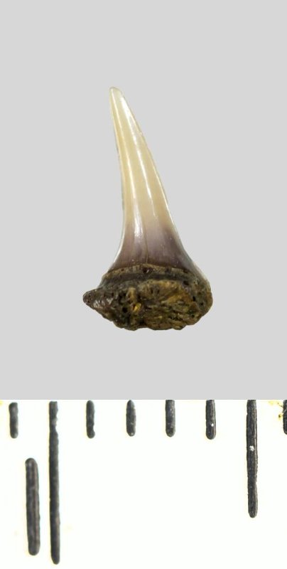 Зуб (фрагмент). Акула. Lamniformes gen. et sp. indet. Классификация: Хордовые Chordata, Позвоночные Vertebrata, Хрящевые рыбы Chondrichthyes, Пластиножаберные Elasmobranchii, Акулы Selachii, Ламнообразные Lamniformes