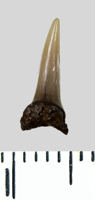 Зуб (фрагмент). Акула. Lamniformes gen. et sp. indet. Классификация: Хордовые Chordata, Позвоночные Vertebrata, Хрящевые рыбы Chondrichthyes, Пластиножаберные Elasmobranchii, Акулы Selachii, Ламнообразные Lamniformes