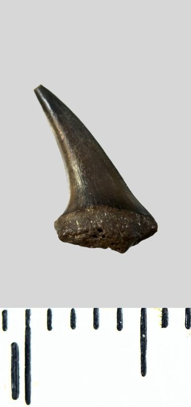 Зуб (фрагмент). Акула. Lamniformes gen. et sp. indet. Классификация: Хордовые Chordata, Позвоночные Vertebrata, Хрящевые рыбы Chondrichthyes, Пластиножаберные Elasmobranchii, Акулы Selachii, Ламнообразные Lamniformes