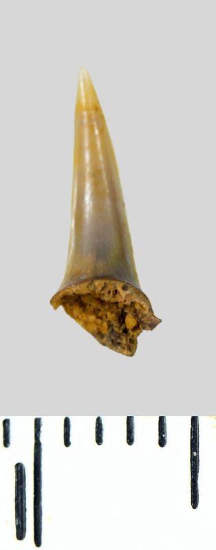 Зуб (фрагмент). Акула. Lamniformes gen. et sp. indet. Классификация: Хордовые Chordata, Позвоночные Vertebrata, Хрящевые рыбы Chondrichthyes, Пластиножаберные Elasmobranchii, Акулы Selachii, Ламнообразные Lamniformes