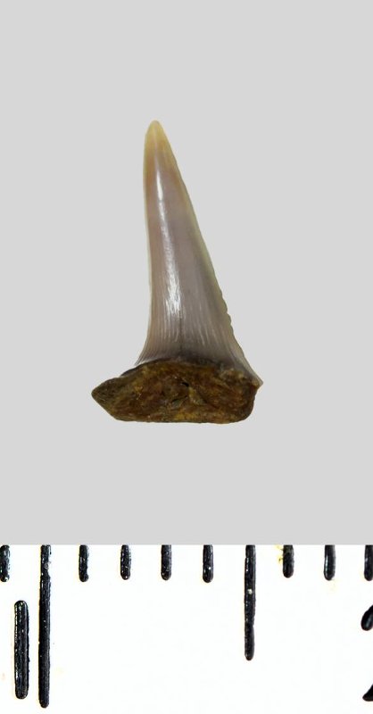 Зуб (фрагмент). Акула. Lamniformes gen. et sp. indet. Классификация: Хордовые Chordata, Позвоночные Vertebrata, Хрящевые рыбы Chondrichthyes, Пластиножаберные Elasmobranchii, Акулы Selachii, Ламнообразные Lamniformes