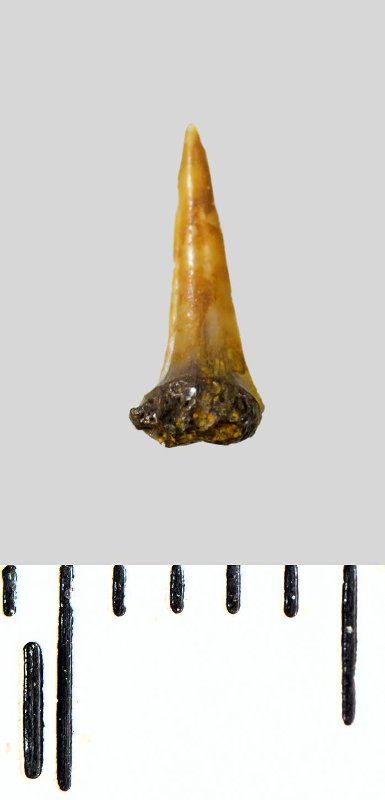Зуб (фрагмент). Акула. Lamniformes gen. et sp. indet. Классификация: Хордовые Chordata, Позвоночные Vertebrata, Хрящевые рыбы Chondrichthyes, Пластиножаберные Elasmobranchii, Акулы Selachii, Ламнообразные Lamniformes