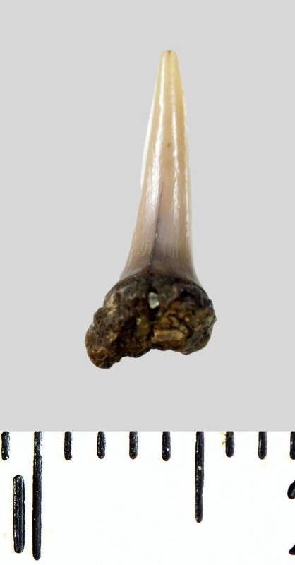 Зуб (фрагмент). Акула. Lamniformes gen. et sp. indet. Классификация: Хордовые Chordata, Позвоночные Vertebrata, Хрящевые рыбы Chondrichthyes, Пластиножаберные Elasmobranchii, Акулы Selachii, Ламнообразные Lamniformes