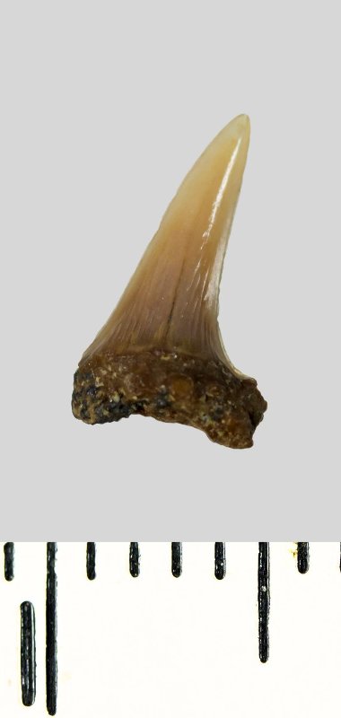 Зуб (фрагмент). Акула. Lamniformes gen. et sp. indet. Классификация: Хордовые Chordata, Позвоночные Vertebrata, Хрящевые рыбы Chondrichthyes, Пластиножаберные Elasmobranchii, Акулы Selachii, Ламнообразные Lamniformes