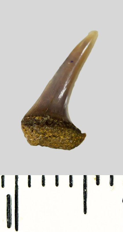 Зуб (фрагмент). Акула. Lamniformes gen. et sp. indet. Классификация: Хордовые Chordata, Позвоночные Vertebrata, Хрящевые рыбы Chondrichthyes, Пластиножаберные Elasmobranchii, Акулы Selachii, Ламнообразные Lamniformes