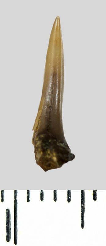 Зуб (фрагмент). Акула. Lamniformes gen. et sp. indet. Классификация: Хордовые Chordata, Позвоночные Vertebrata, Хрящевые рыбы Chondrichthyes, Пластиножаберные Elasmobranchii, Акулы Selachii, Ламнообразные Lamniformes