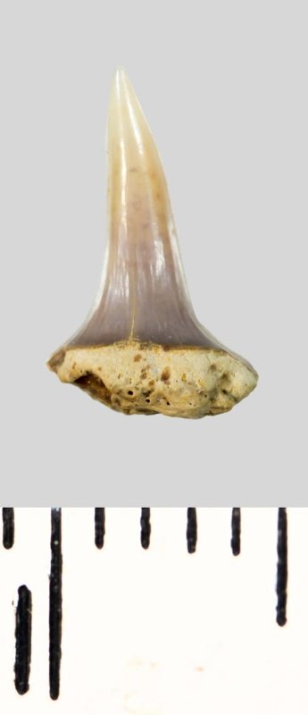 Зуб (фрагмент). Акула. Lamniformes gen. et sp. indet. Классификация: Хордовые Chordata, Позвоночные Vertebrata, Хрящевые рыбы Chondrichthyes, Пластиножаберные Elasmobranchii, Акулы Selachii, Ламнообразные Lamniformes