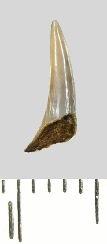 Зуб (фрагмент). Акула. Lamniformes gen. et sp. indet. Классификация: Хордовые Chordata, Позвоночные Vertebrata, Хрящевые рыбы Chondrichthyes, Пластиножаберные Elasmobranchii, Акулы Selachii, Ламнообразные Lamniformes
