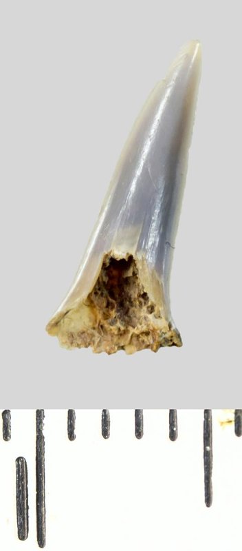Зуб (фрагмент). Акула. Lamniformes gen. et sp. indet. Классификация: Хордовые Chordata, Позвоночные Vertebrata, Хрящевые рыбы Chondrichthyes, Пластиножаберные Elasmobranchii, Акулы Selachii, Ламнообразные Lamniformes