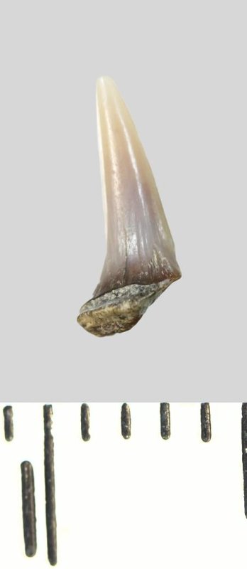 Зуб (фрагмент). Акула. Lamniformes gen. et sp. indet. Классификация: Хордовые Chordata, Позвоночные Vertebrata, Хрящевые рыбы Chondrichthyes, Пластиножаберные Elasmobranchii, Акулы Selachii, Ламнообразные Lamniformes
